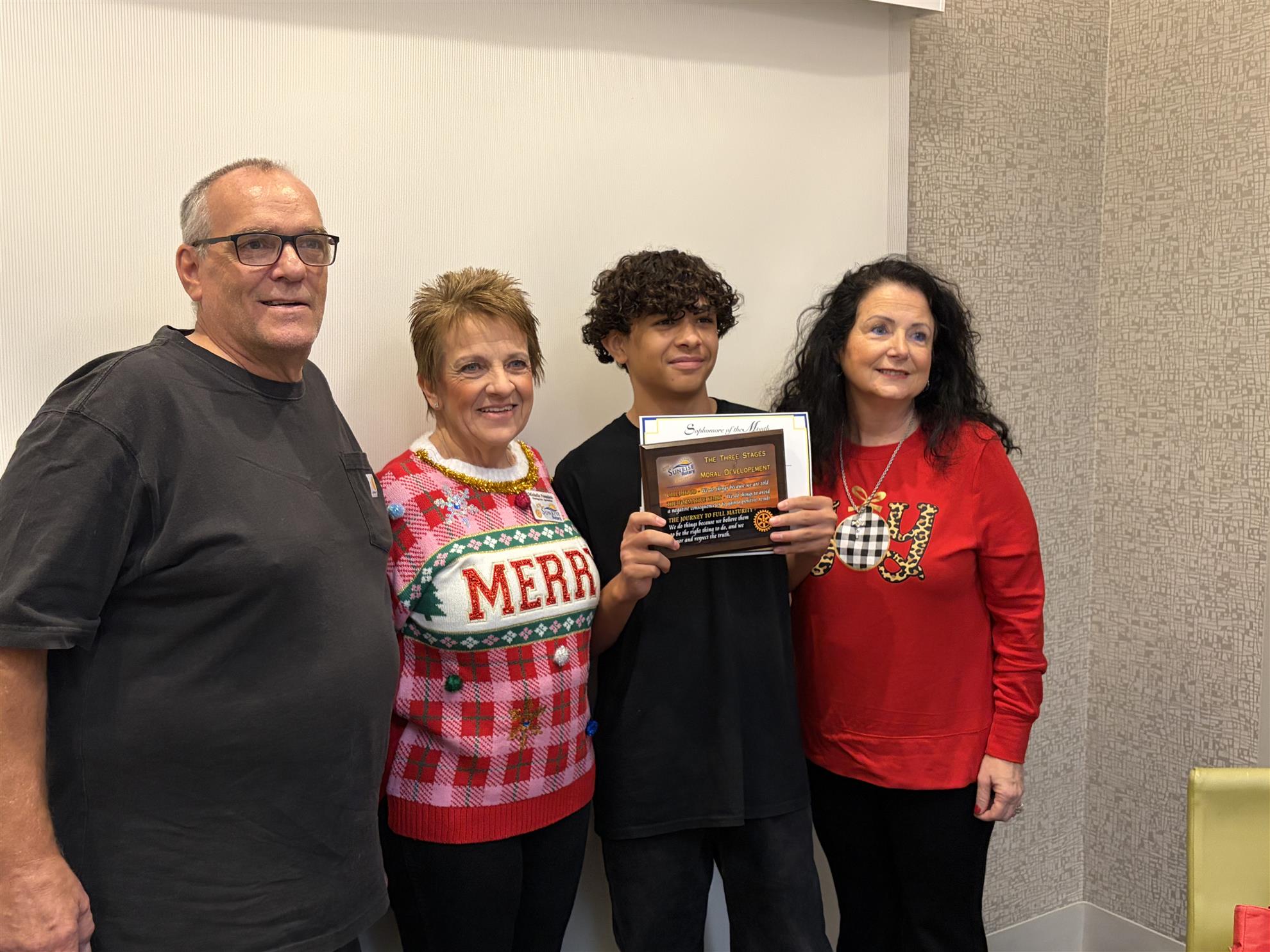 Lake Havasu Sunrise Rotary recognizes Christian Demauro as December's Sophomore of the Month. Christian was identified by his counselors for his improved performance in his classes. He enjoys math and has future plans of becoming a Fire Fighter. Pictured are Andy Demauro (father), Michelle Pounders (LHSR), Christian Demauro (student) and Kelly Demauro (mother).
